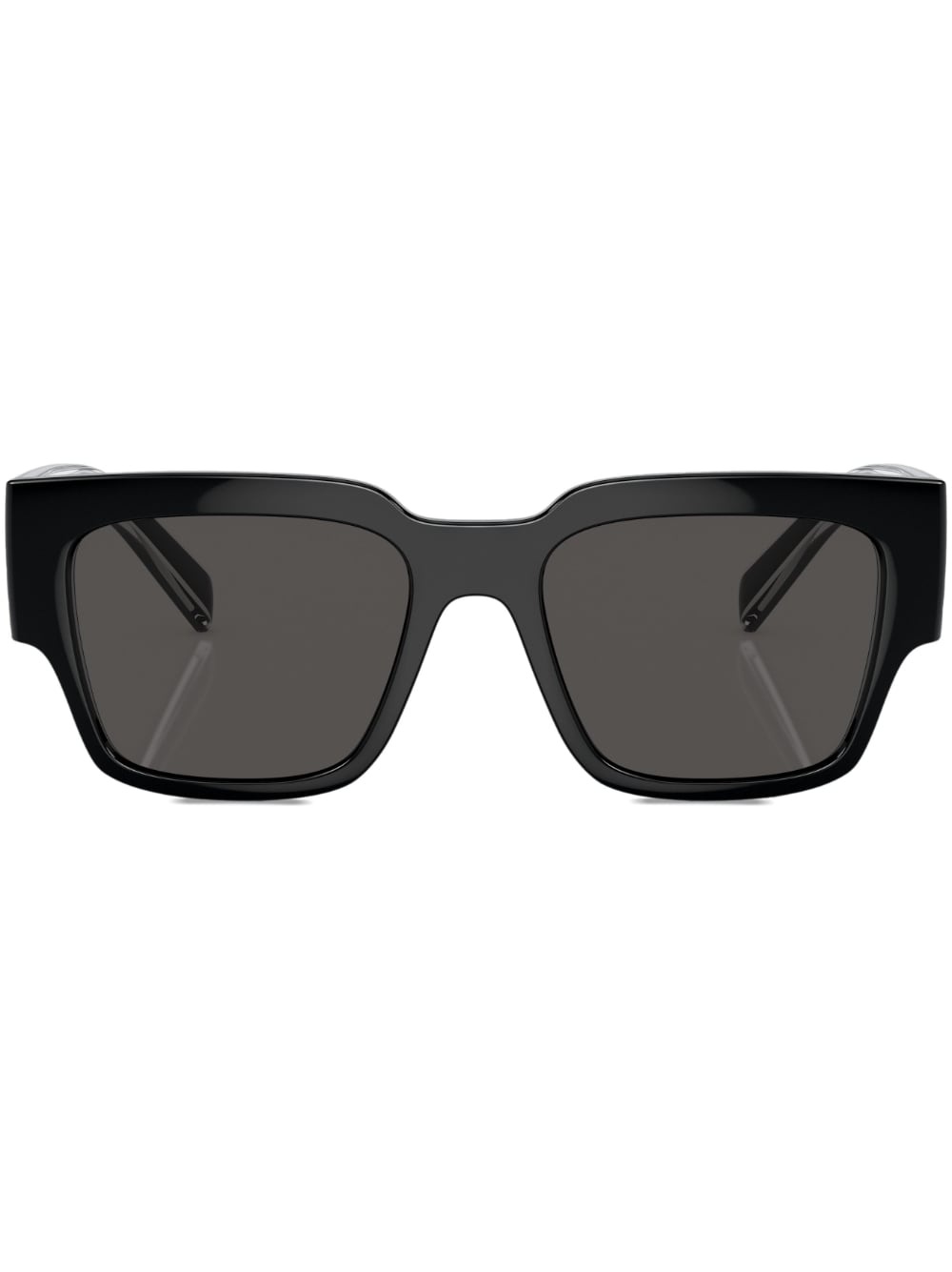 logo-print square-frame sunglasses black grey tinted lenses square frame logo print at the arm oversize arms curved tips These glasses come with a protective case. Made in United States Composition Plastic 100%, Polycarbonite 100% SIZE & FIT Measurement Arm Length 5.7 in(14.5 cm) Bridge Width 0.7 in(1.8 cm) Lens Diameter 2.04 in(5.2 cm)