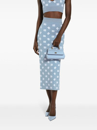 DNA logo-print straight skirt Highlights - Sky blue - Jersey texture - Monogram print - Ribbed waistband - Calf-length - Straight hem Made in Italy Composition Viscose 83%, Polyester 17%