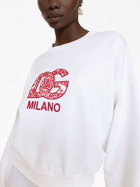 logo-print sweatshirt Cut to a relaxed silhouette, this sweatshirt arrives as part of Dolce & Gabbana's AW23 collection. It features the label's DG logo at the chest detailed with the Majolica tile-inspired print, a nod to the brand's Sicilian roots. Highlights - White/red - Cotton - Crew neck - Long sleeves - Logo print at chest - Ribbed trims - Straight hem Made in Italy Composition Cotton 100%
