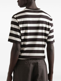 logo-print T-shirt Highlights - Cedar brown - Horizontal stripe print - Round neck - Long sleeves - Straight hem Made in Italy Composition Silk 100%