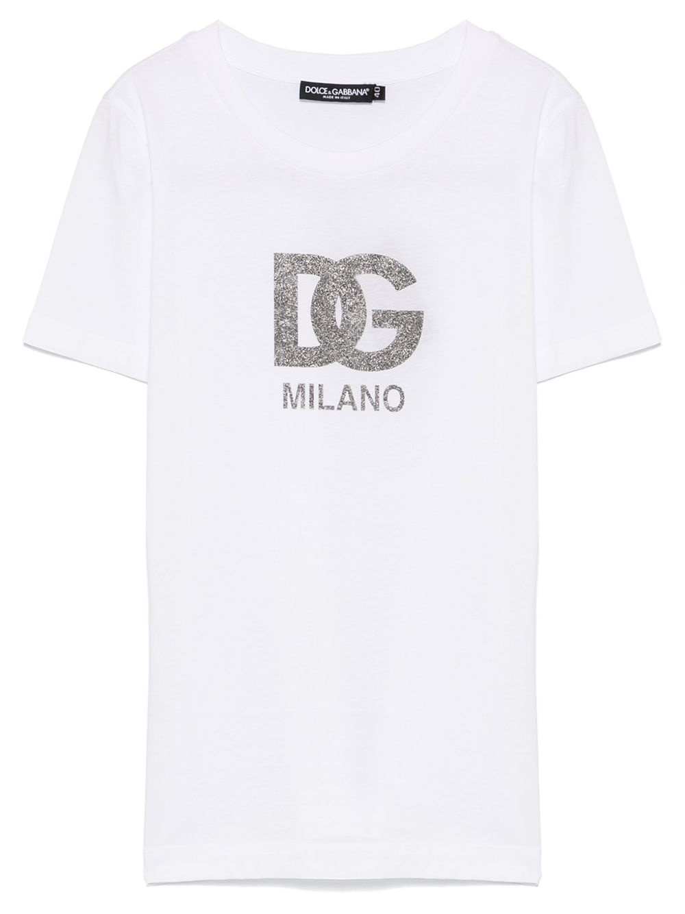 logo-print T-shirt Highlights - White - Cotton - Lightweight jersey - Crew neck - Logo print to the front - Glitter detailing - Short sleeves - Straight hem Made in Italy Composition Cotton 100% SIZE & FIT Model measurements Height 5 ft 10 in(1.78 m) Bust/Chest 31.49 in(80 cm) Hips 37 in(94 cm) Waist 23.62 in(60 cm) FittingInformation Designed for a slim fit that sits just away from the body offering a close yet comfortable fit Made from a midweight non-stretch fabric, this piece offers minimal elasticity when worn Washing instructions Machine Wash