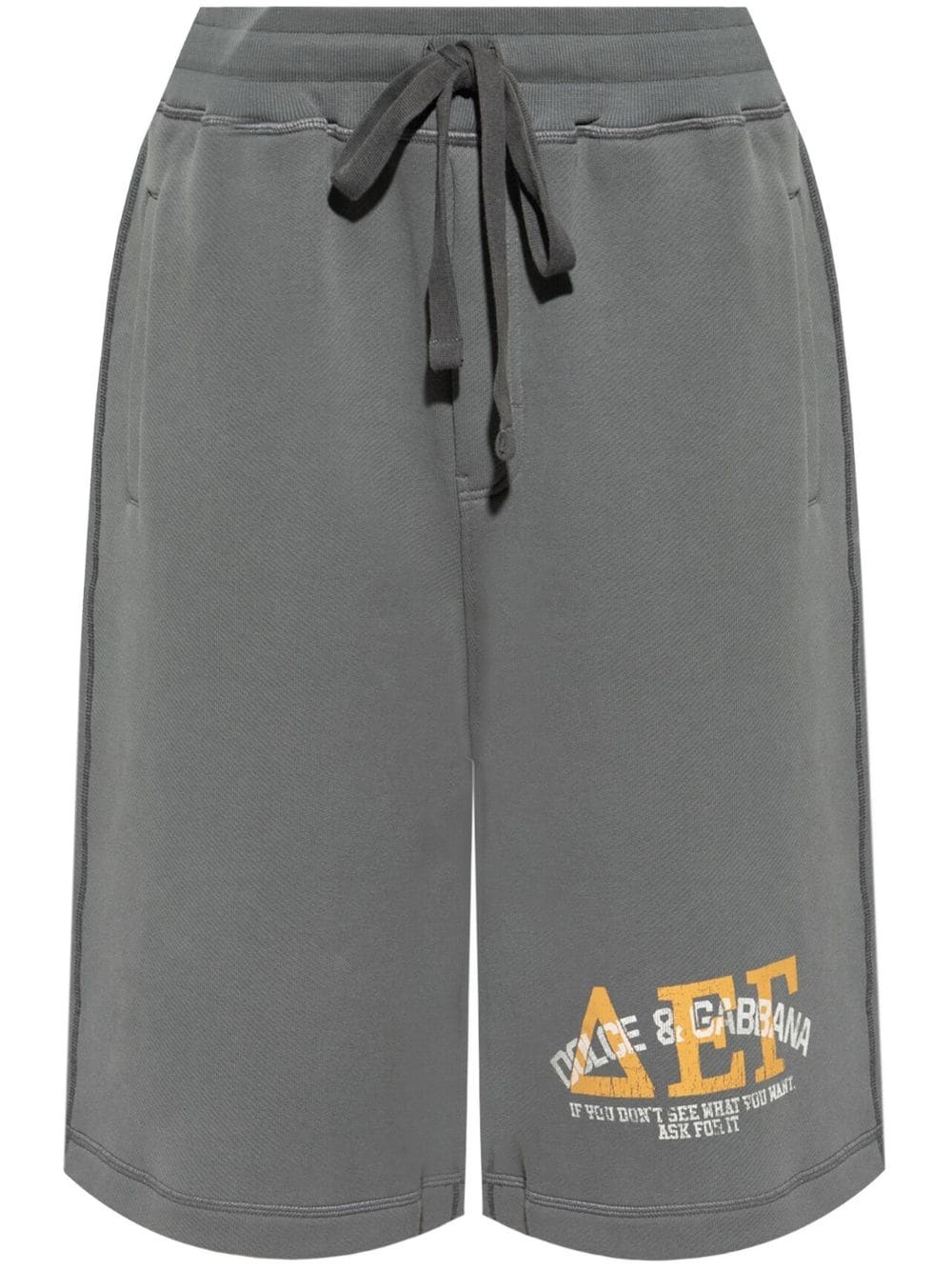 logo-print track shorts Highlights - Medium grey - Stretch-cotton - Jersey texture - Elasticated drawstring waistband - Mid-rise - Two side welt pockets - Logo print at the leg - Straight leg - Knee-length Made in Italy Composition Cotton 95%, Elastane 5%