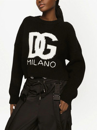 DG-logo fisherman's-knit jumper Highlights - Black/white - Virgin wool - Logo print to the front - Crew neck - Long sleeves - Straight hem Made in Italy Composition Virgin Wool 100%