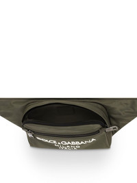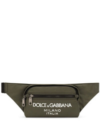 logo-print zip-fastening belt bag Highlights - Khaki - Leather trim - Logo print to the front - Logo-engraved silver-tone hardware - Adjustable waist strap - Front zip fastening - Main compartment - Front zip-fastening pocket Made in Italy Composition Lining: Nylon 85%, Calf Leather 15% Outer: Nylon 50%, Acrylic 20%, Rayon 15%, Calf Leather 15% SIZE & FIT Measurement DEPTH 1.96 in(5 cm) HEIGHT 5.51 in(14 cm) WIDTH 14.96 in(38 cm)
