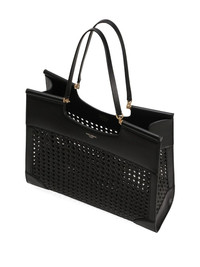 logo-stamp tote bag Highlights - Black - Logo stamp to the front - Two long top handles - Open top Made in Italy Composition Outer: Goat Skin 60%, CALFSKIN 40% Lining: Lambskin 95%, Polylactic Acid (PLA) 5% SIZE & FIT Measurement DEPTH 5.11 in(13 cm) HEIGHT 12.2 in(31 cm) WIDTH 14.56 in(37 cm)