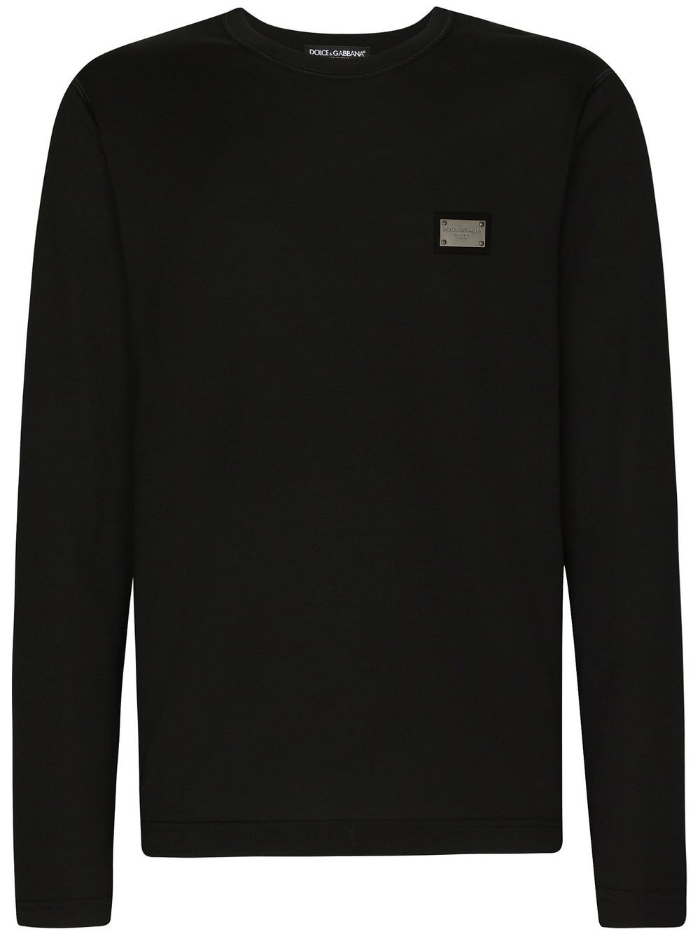 logo-tag long-sleeve T-shirt Running away from the brand's usual bold prints and colours, this long-sleeve T-shirt from Dolce & Gabbana arrives in an all black colour. Its design is crafted from cotton and is highlighted with a silver-tone logo plaque at the chest. Highlights - Jet black - Cotton - Logo plaque - Crew neck - Long sleeves - Straight hem Made in Italy Composition Cotton 100% SIZE & FIT FittingInformation Designed for a regular fit allowing for a comfortably loose fit throughout the body Made from a midweight non-stretch fabric, this piece offers minimal elasticity when worn