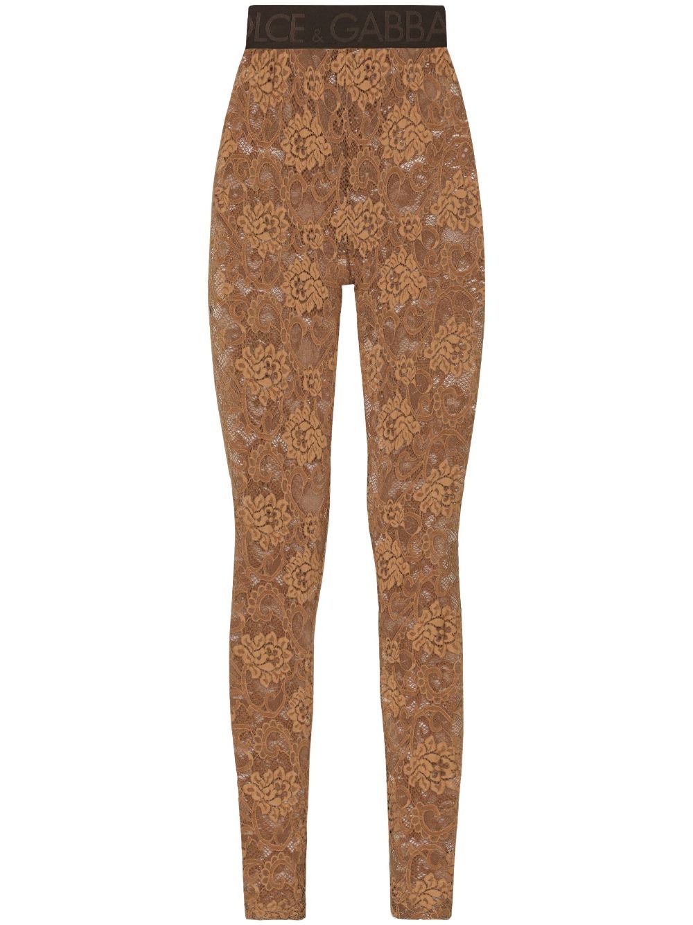 logo-waistband lace leggings Highlights - Brown - Silk blend - Stretch-design - Lace embroidery - Logo waistband Made in Italy Composition Outer: Nylon 85%, Elastane 15% Lining: Silk 91%, Elastane 9% Washing instructions Read Manufacturer Guidelines