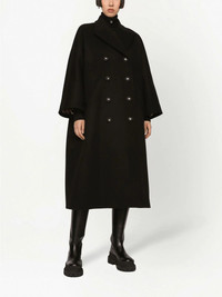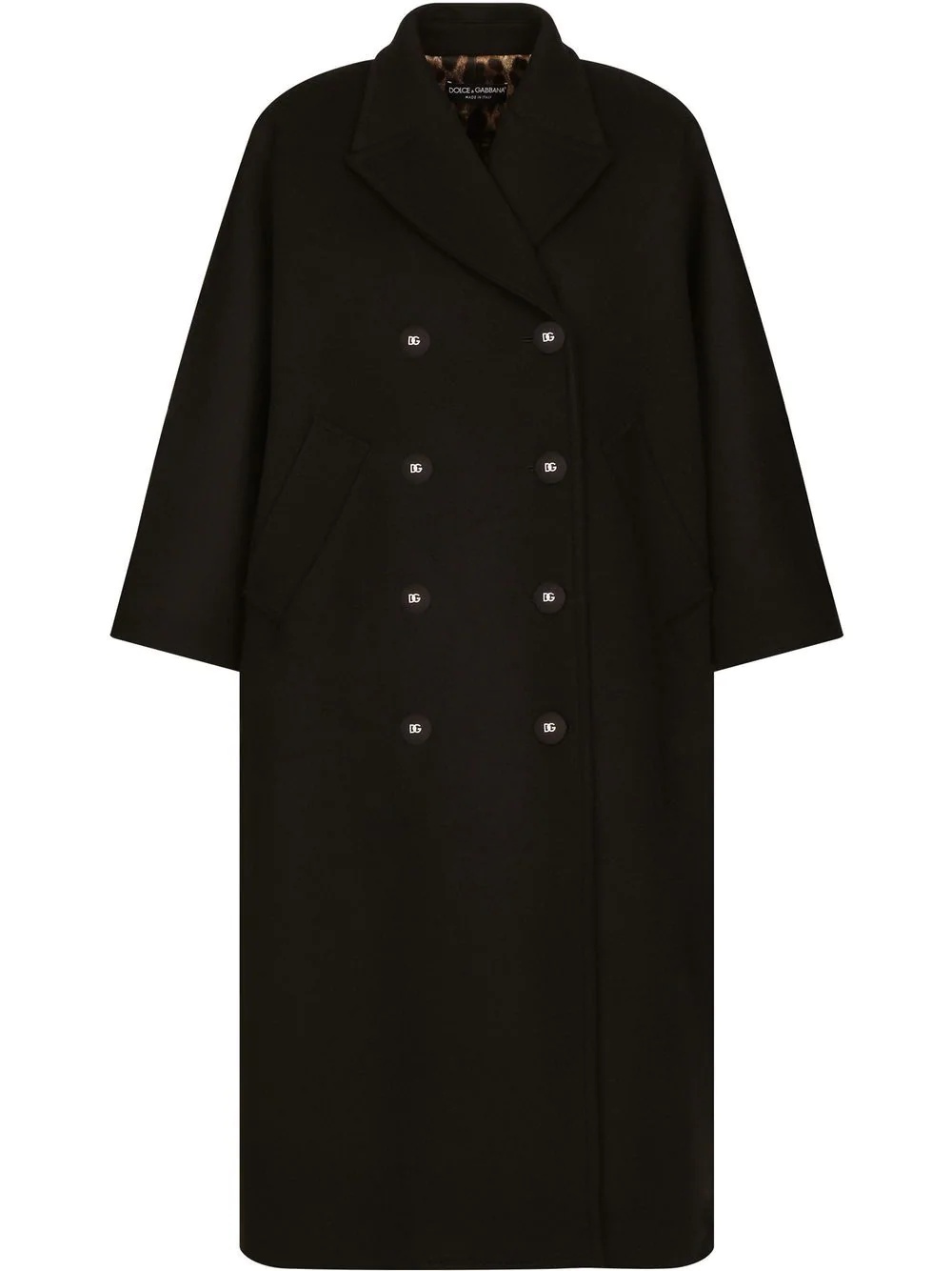 double-breasted baize coat Highlights - Jet black - Virgin wool-cashmere blend - Notched lapels - Long sleeves - Double-breasted button fastening - Two side welt pockets - Long length - Leopard print lining Made in Italy Composition Lining: Polyester 97%, Spandex/Elastane 3% Outer: Virgin Wool 90%, Cashmere 10%