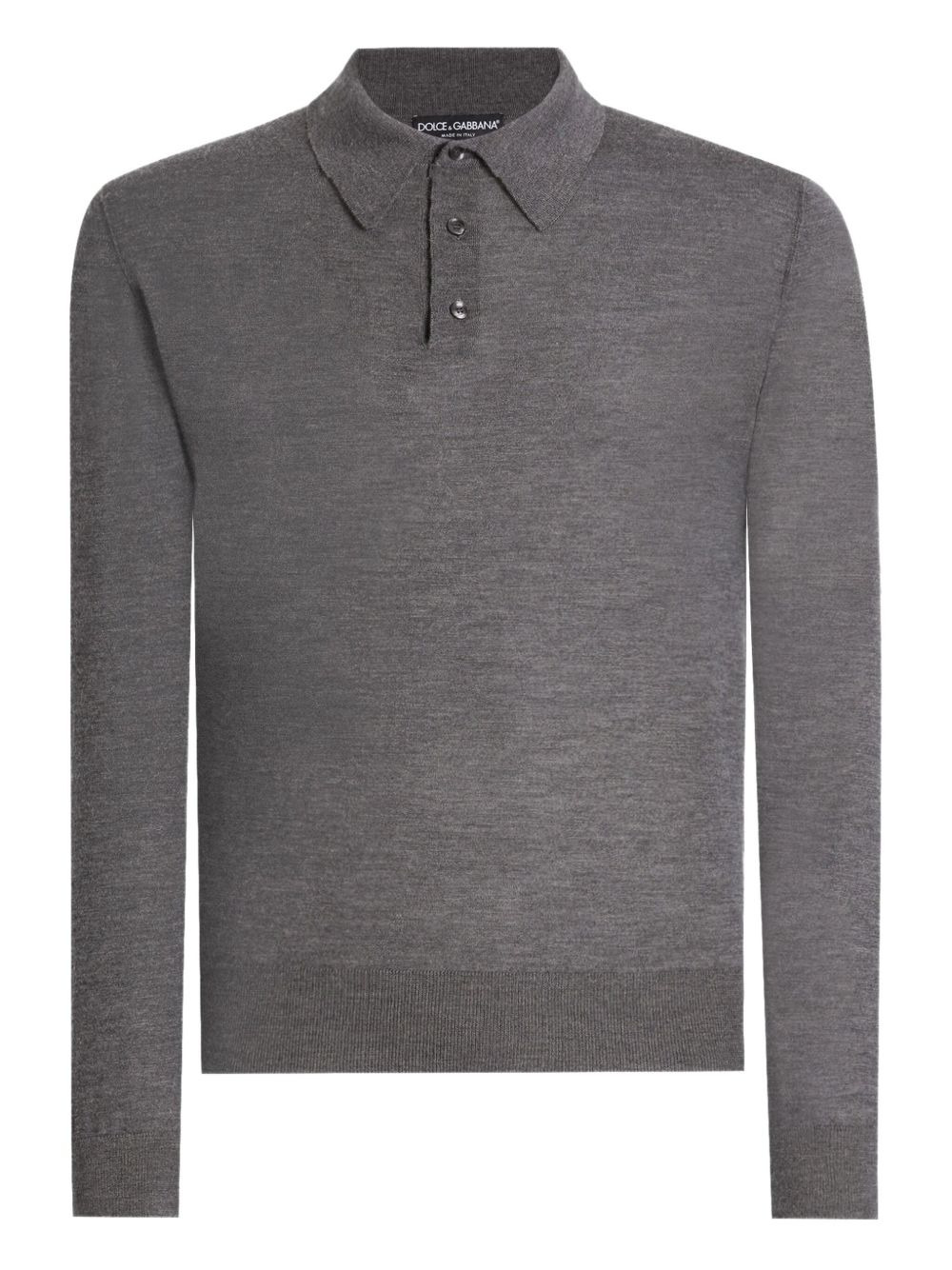 long-sleeve polo shirt Highlights - Grey - Polo neck - Long sleeves - Button fastening - Ribbed hem - Straight hem Made in Italy Composition Cashmere 100% Washing instructions Read Manufacturer Guidelines