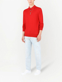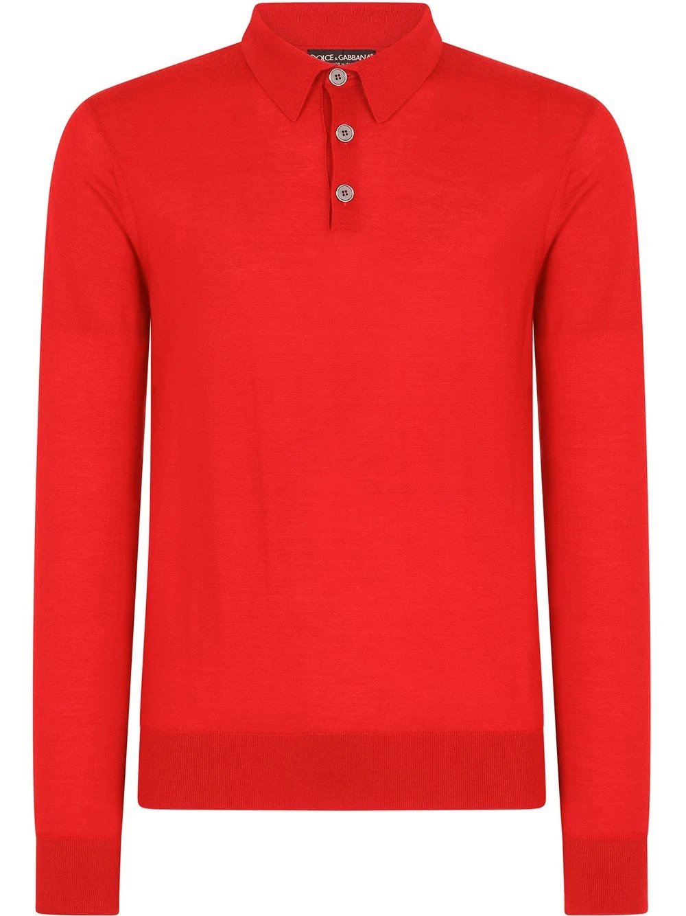 cashmere polo shirt Pull this Dolce & Gabbana polo shirt on...and you'll never want to take it off. And that's understandable. Crafted from soft cashmere, this piece is just what you were looking for. Highlights - Bright red - Cashmere - Polo collar - Front button fastening - Long sleeves - Elasticated cuffs Made in Italy Composition Outer: Cashmere 100%