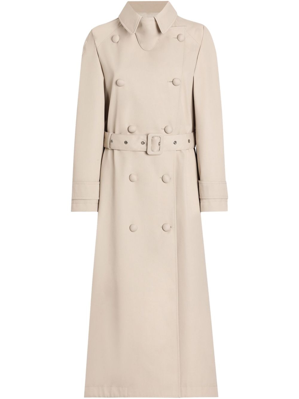 long trench coat Highlights - Archive beige - Double-breasted button fastening - Two side slit pockets - Classic collar - Belted waist Made in Italy Composition Outer: Polyester 65%, Cotton 35% Lining: Silk 100%