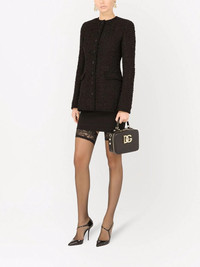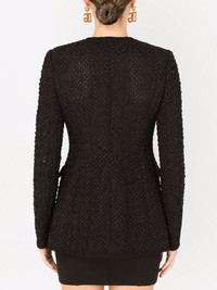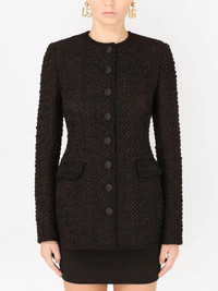 single-breasted tweed jacket Designerduoen Dolce & Gabbana er indbegrebet af italiensk glamour og elegance. Det demonstreres i denne sorte tweedjakke, der er fremstillet i en blanding af jomfruuld og silke. Den tilpassede silhuet med flaplommer fremhæver jakkens feminine stil. Highlights - Black - Virgin wool-silk blend - Tweed - Round neck - Front button fastening - Long sleeves - Two front flap pockets Made In Italy Composition Lining: Nylon 95%, Silk 5% Outer: Nylon 60%, Virgin Wool 40%