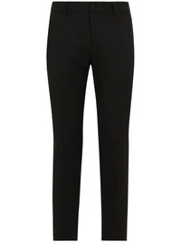 low-waist tailored wool blend trousers Dolce & Gabbana's SS24 collection 'celebrates sensuality' with predominantly black looks. As part of that edit, these trousers are expertly crafted from stretch wool into a classic slim-fit tailored profile. Highlights - Black - Stretch-wool - Concealed fly and button fastening - Belt loops - Low-rise - Slim cut - Tailored cut Made in Italy Composition Wool 97%, Spandex/Elastane 3%