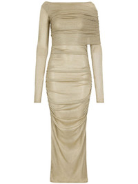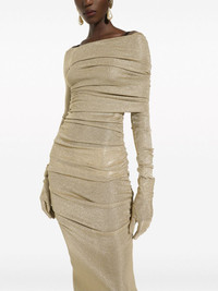 lurex mesh calf-length dress Highlights - Gold-tone - Mesh design - Lurex detailing - Unlined - Gathered detailing - Long sleeves - Calf-length - Straight hem Made in Italy Composition Rayon 70%, Polyester 30%