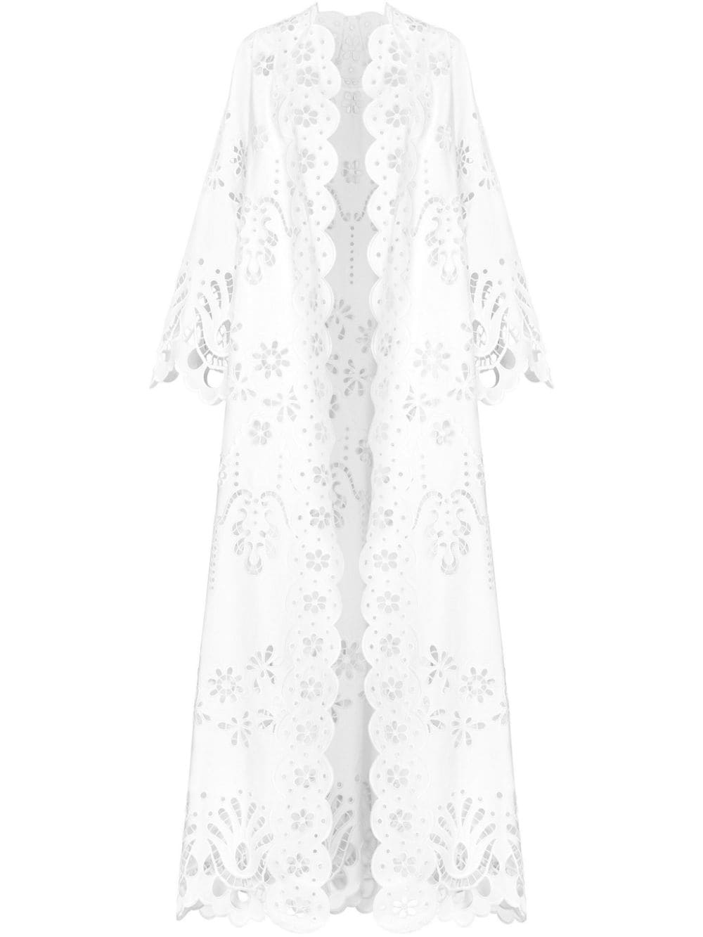 macrame cut-out long coat Highlights - White - Cotton blend - Macrame detailing - Cut-out detailing - Open front - Long sleeves - Long length Made in Italy Composition Cotton 96%, Polyester 4%