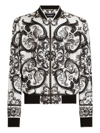 maiolica pattern bomber jacket Highlights - White - Front zip fastening - Baseball collar - All-over graphic print - Two side slit pockets Made in Italy Composition Silk 100%