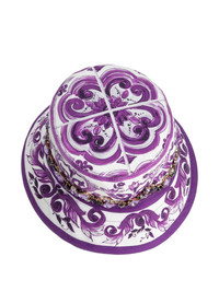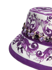 Maiolica-print bucket hat Highlights - White - Flat crown - Dropped narrow brim - Crystal embellishment - All-over graphic print Made in Italy Composition Outer: Cotton 98%, Spandex/Elastane 2% Lining: Cotton 100%