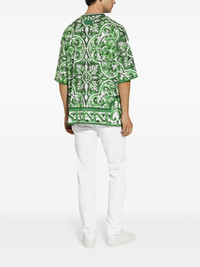 Majolica cotton t-shirt Highlights - Green - White - All-over graphic print - Round neck - Short sleeves - Straight hem Made in Italy Composition Cotton 100%