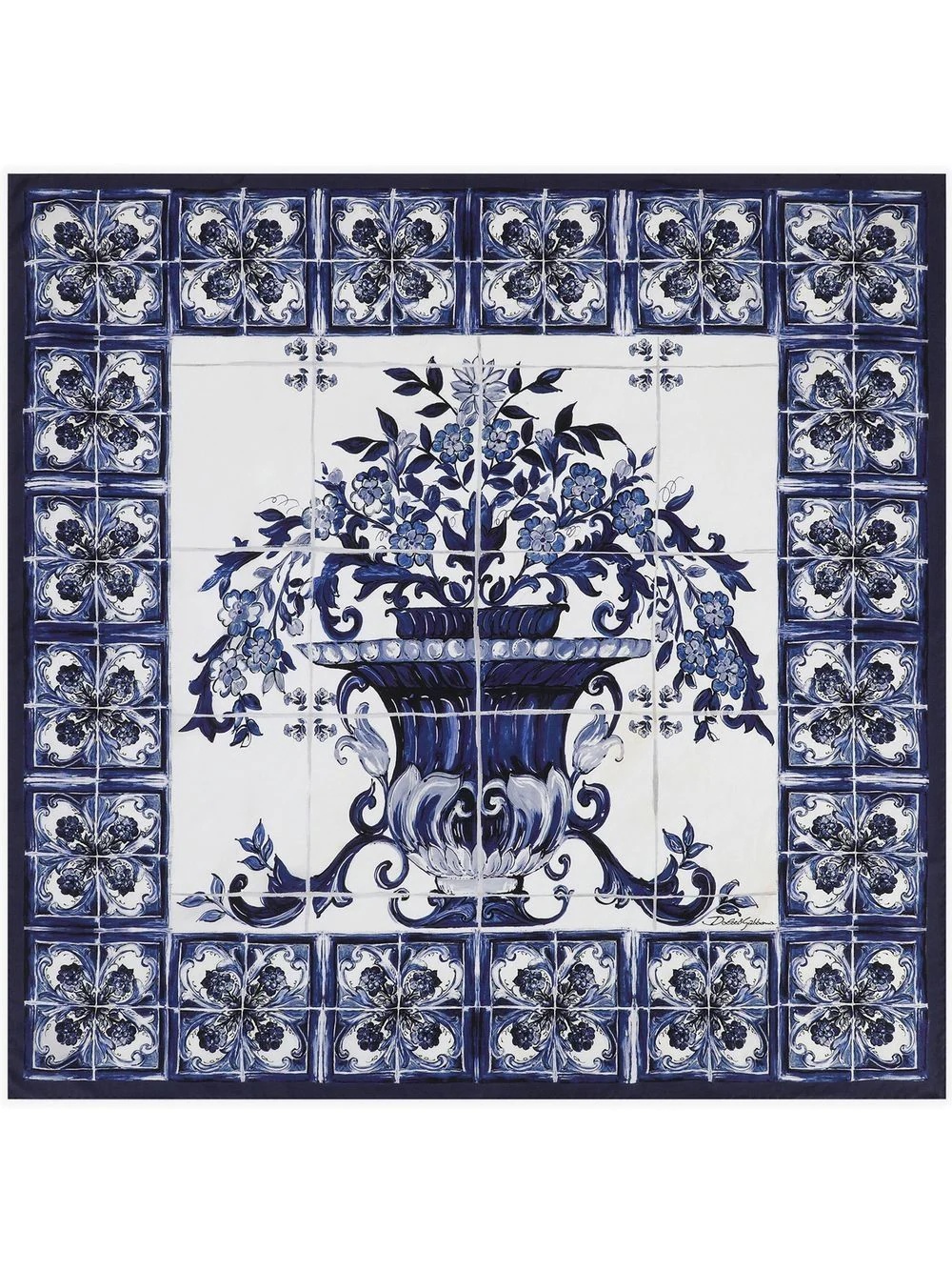 Majolica-print twill scarf Highlights - Majolica foulard twill scarf from dolce & gabbana featuring navy blue, white, silk, majolica print, finished edge and lightweight construction. Made in Italy Composition Silk 100% SIZE & FIT Measurement LENGTH 35.43 in(90 cm) WIDTH 35.43 in(90 cm)
