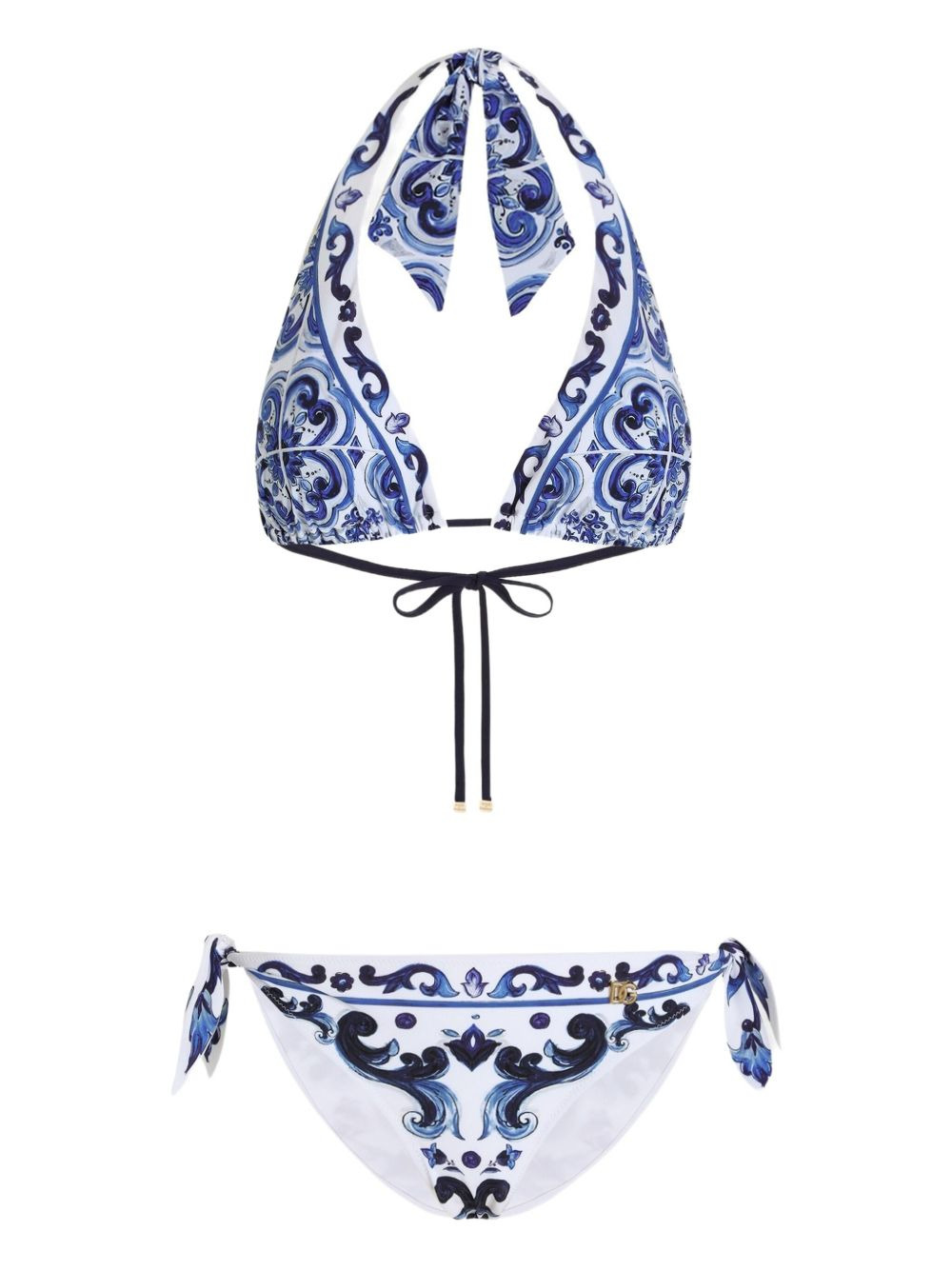 majolica-print bikini Highlights - Blue - Halterneck - Triangle top - Tie-side bottoms - Majolica print - Be mindful to try on swimwear over your own garments. Made in Italy Composition Outer: Polyamide 74%, Elastane 26% Lining: Polyamide 88%, Elastane 12% Washing instructions Read Manufacturer Guidelines