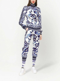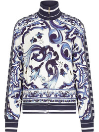 Majolica-print zip-up sweatshirt Highlights - Navy blue/white - Majolica print - Logo-tape detailing - High neck - Front zip fastening - Long sleeves - Two side zip-fastening pockets - Elasticated cuffs - Elasticated hem Made in Italy Composition Rayon 97%, Spandex/Elastane 3%