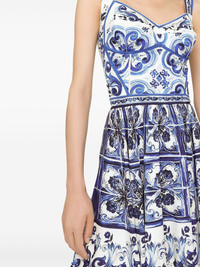 Majolica-print bustier minidress Dolce & Gabbana's Italian roots are a perennial source of inspiration for the brand, and this minidress is proof. Made with silk, it's saturated with a Majolica print referencing the calligraphic and naturalistic decoration found in pottery from Caltagirone, Sicily. It features a bustier-style bodice and flared skirt. Highlights - Royal blue/white - Silk blend - Charmeuse - Majolica print - Bustier-style neckline - Concealed rear hook and zip fastening - Wide shoulder straps - Flared skirt - Flared hem - Above-knee length - Partial lining Made in Italy Composition Silk 67%, Polyamide 24%, Elastane 9% SIZE & FIT Measurement LENGTH 33.46 in(85 cm) WAIST 25.19 in(64 cm) HIPS 37.79 in(96 cm) FittingInformation Designed for a close fit at the chest and waist with a loose fit at the hip