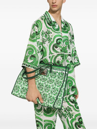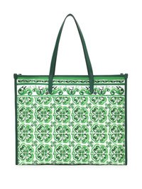 Majolica-print canvas tote bag Highlights - Bright green/white - Cotton - Canvas - Leather trim - Majolica print - Silver-tone logo plaque - Two flat top handles - Concealed magnetic fastening - Main compartment - Internal zip-fastening pocket Made in Italy Composition Lining: Cotton 80%, Calf Leather 15%, Acrylic 5% Outer: Cotton 90%, Calf Leather 10% SIZE & FIT Measurement DEPTH 5.7 in(14.5 cm) HEIGHT 13.58 in(34.5 cm) WIDTH 16.73 in(42.5 cm)