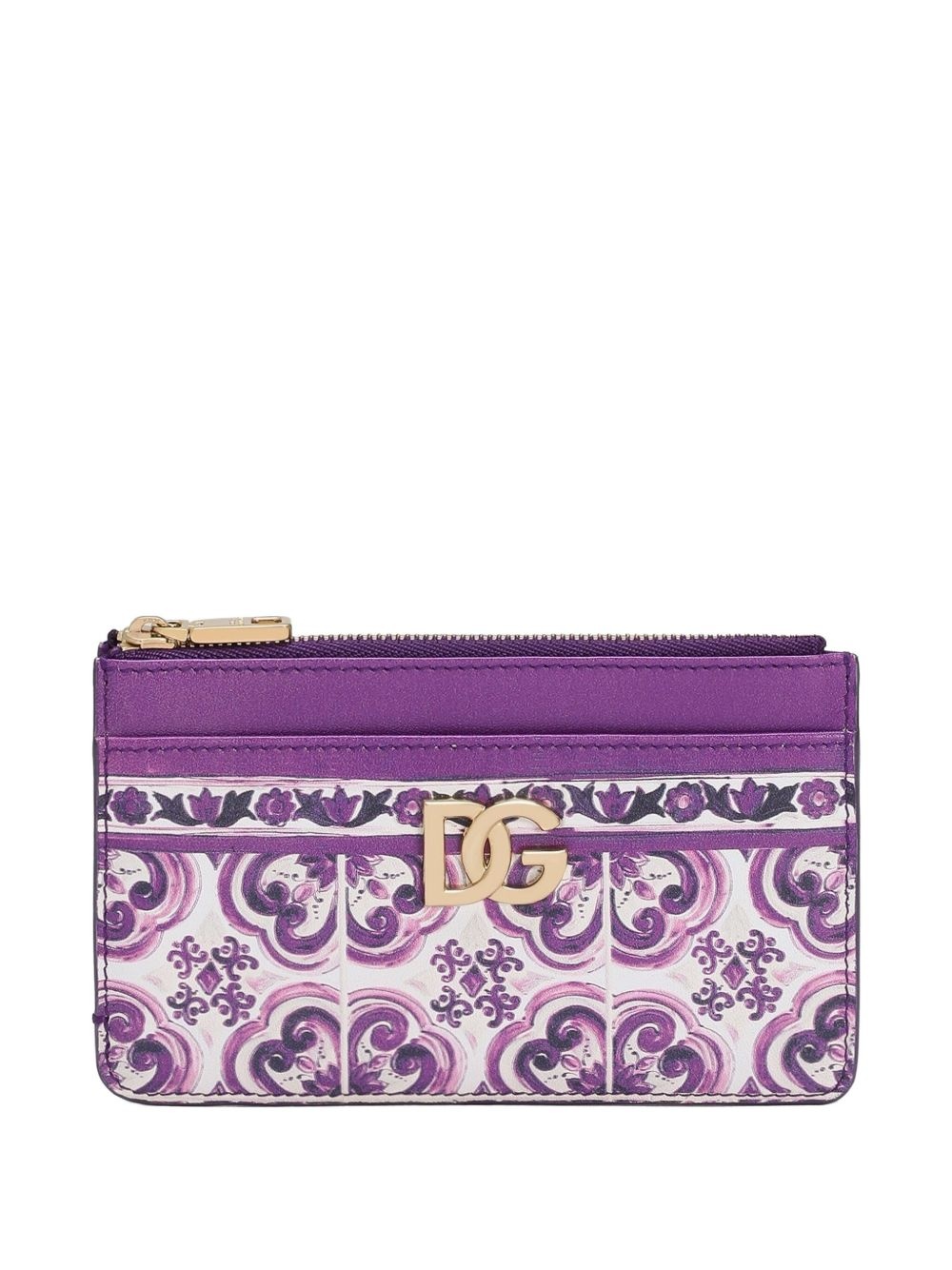 Majolica-print cardholder Highlights - White and purple - Logo embellishment - Zip compartment - Front pocket - Patterned design - Multiple card slots Made in Italy Composition Outer: Calf Leather 100% Lining: Viscose 100% SIZE & FIT Measurement LENGTH 3.54 in(9 cm) WIDTH 5.31 in(13.5 cm)