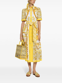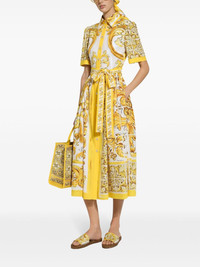 Cotton poplin midi shirt dress with majolica print