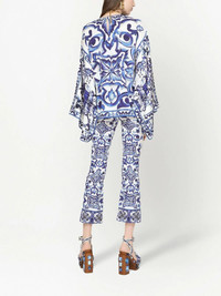 Flared trumpet-leg charmeuse pants with majolica print
