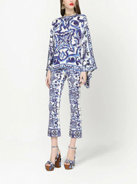 Majolica-print cropped trousers