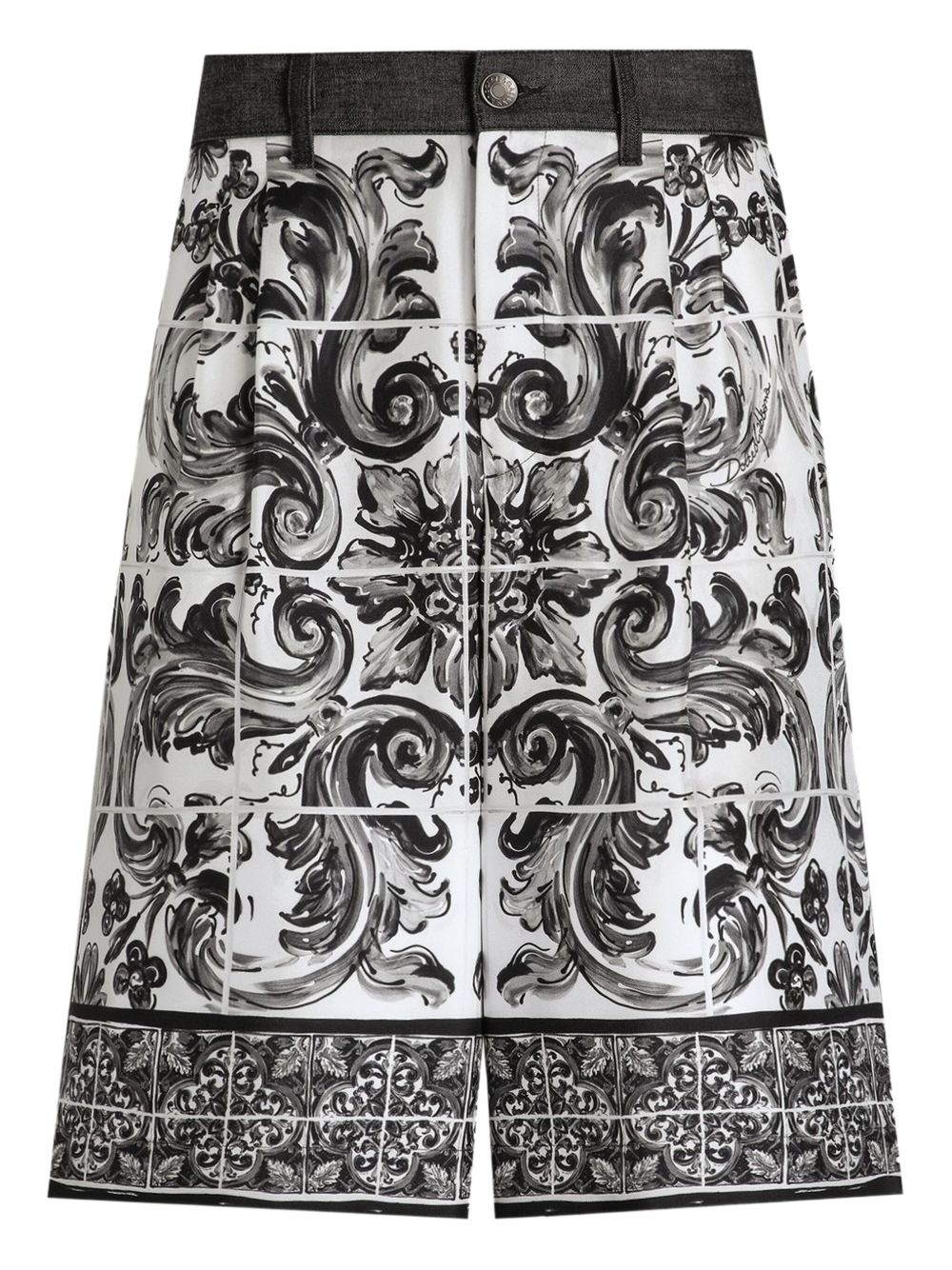 Majolica-print denim shorts