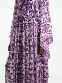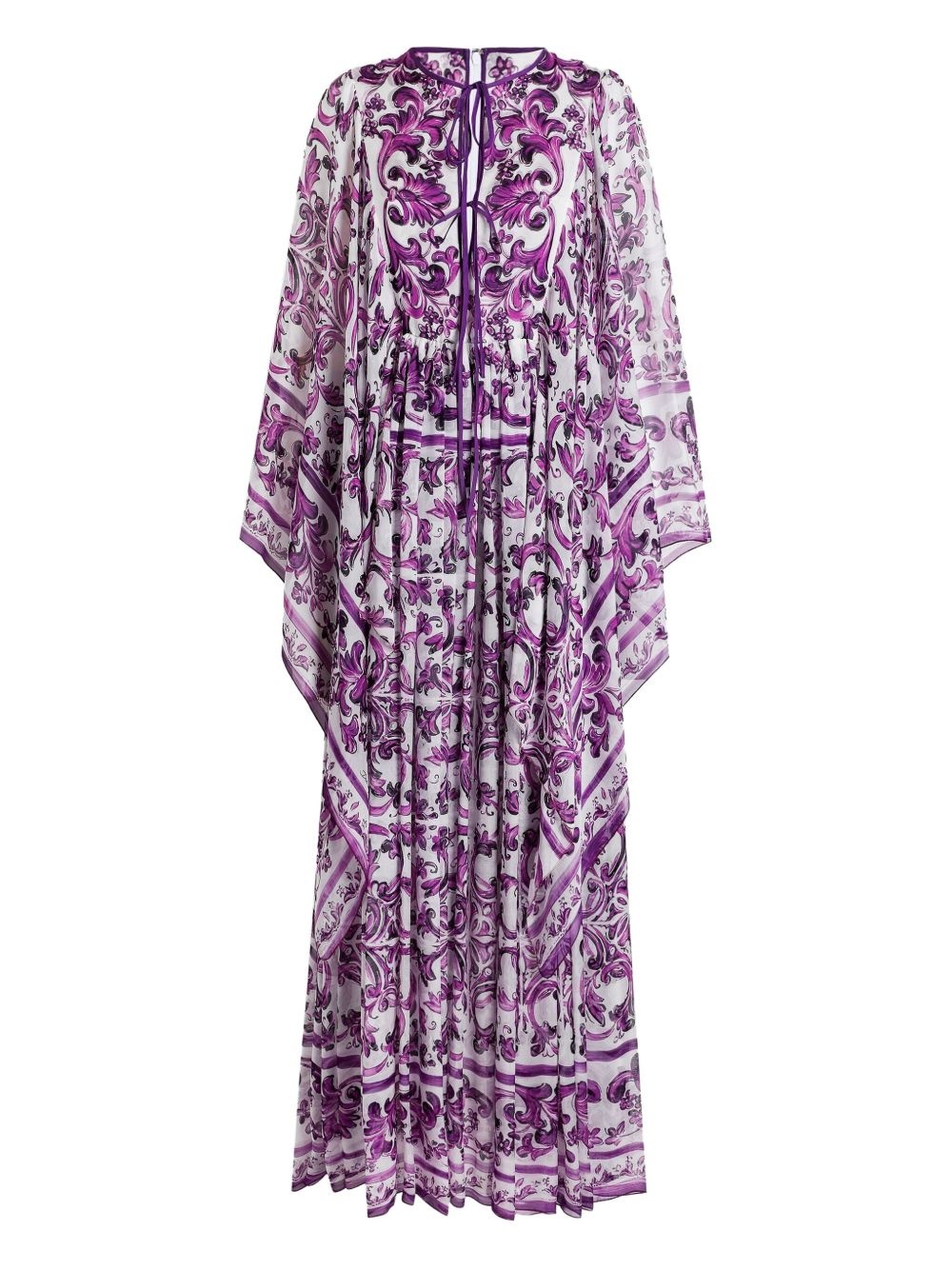 Majolica-print dress Highlights - Amaranth purple - Concealed rear zip fastening - Front tie fastening - Round neck - Long sleeves Made in Italy Composition Silk 100% Washing instructions Read Manufacturer Guidelines