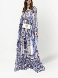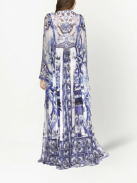 Majolica-print floor length dress