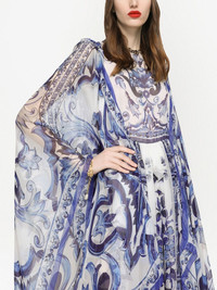 Majolica-print floor length dress Defined by a white and blue Majolica print, this floor length dress shows DOLCE & GABBANA's bold Sicilian-inspired style. Ots design is crafted from silk for a soft touch and features a straight, relaxed cut. Made in Italy Composition Silk 100% SIZE & FIT Measurement HIPS 39.37 in(100 cm) LENGTH 62.2 in(158 cm) WAIST 27.95 in(71 cm) FittingInformation Designed to be unstructured, offering a loose fit throughout