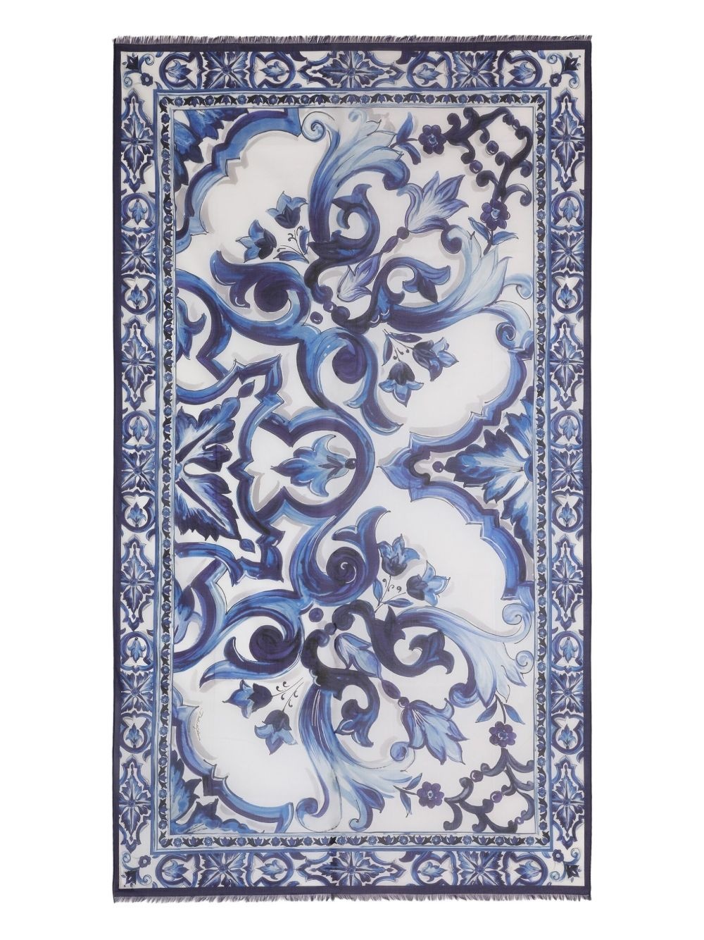 Majolica-print fringed sarong Highlights - Blue - Majolica print - Fringed edges - Rectangular shape Made in Italy Composition Cotton 100% Washing instructions Read Manufacturer Guidelines