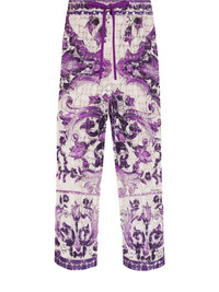 Majolica-print lace trousers