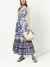 Majolica-print bustier maxi dress Defined by a white and blue Majolica print, this midi dress shows DOLCE & GABBANA's bold Sicilian-inspired style. Its design is crafted from soft cotton and features a relaxed cut enhanced with a sweetheart's neck. Highlights - White/blue - Cotton - Majolica print - Sweetheart neck - Thin shoulder straps - Mid-length Made in Italy Composition Cotton 100% SIZE & FIT Measurement LENGTH 53.54 in(136 cm) WAIST 24.4 in(62 cm) FittingInformation Designed for a close fit at the chest and waist with a loose fit at the hip