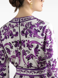 Majolica-print mini dress Highlights - Amethyst purple - Rear press-stud fastening - Belted waist - Long sleeves Made in Italy Composition Silk 91%, Elastane 9% Washing instructions Read Manufacturer Guidelines