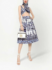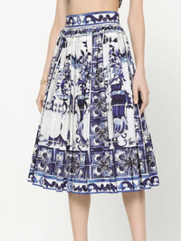 Majolica-print pleated midi skirt Highlights - Majolica-print pleated a-line midi skirt from dolce & gabbana featuring navy blue, blue, white, majolica print, fully pleated, high waist, concealed rear zip fastening, a-line and straight hem. Made in Italy Composition Cotton 100% SIZE & FIT Measurement LENGTH 28.74 in(73 cm) WAIST 23.62 in(60 cm) HIPS 39.37 in(100 cm) FittingInformation This midi-length skirt is intended to be worn high on the waist