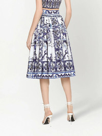 Poplin midi skirt with majolica print