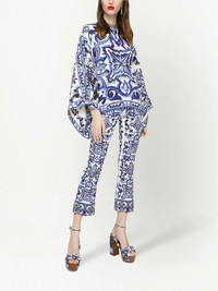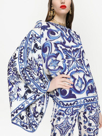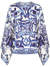 Majolica-print silk blouse Highlights - Navy blue/blue/white - Stretch-silk - Majolica print - Round neck - Batwing sleeves - Straight hem Made in Italy Composition Silk 94%, Elastane 6% SIZE & FIT Measurement LENGTH 25.59 in(65 cm) FittingInformation Designed to be unstructured, offering a loose fit throughout