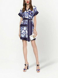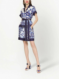Majolica-print silk pajama shorts Highlights - Navy blue - White - Silk - Majolica print - High waist - Elasticated waistband - Straight hem - Above-knee length Made in Italy Composition Silk 100% SIZE & FIT FittingInformation Designed for a loose fit, offering comfort and movement when worn The elasticated waist allows for a comfortable fit