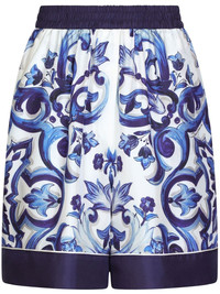 Majolica-print silk shorts