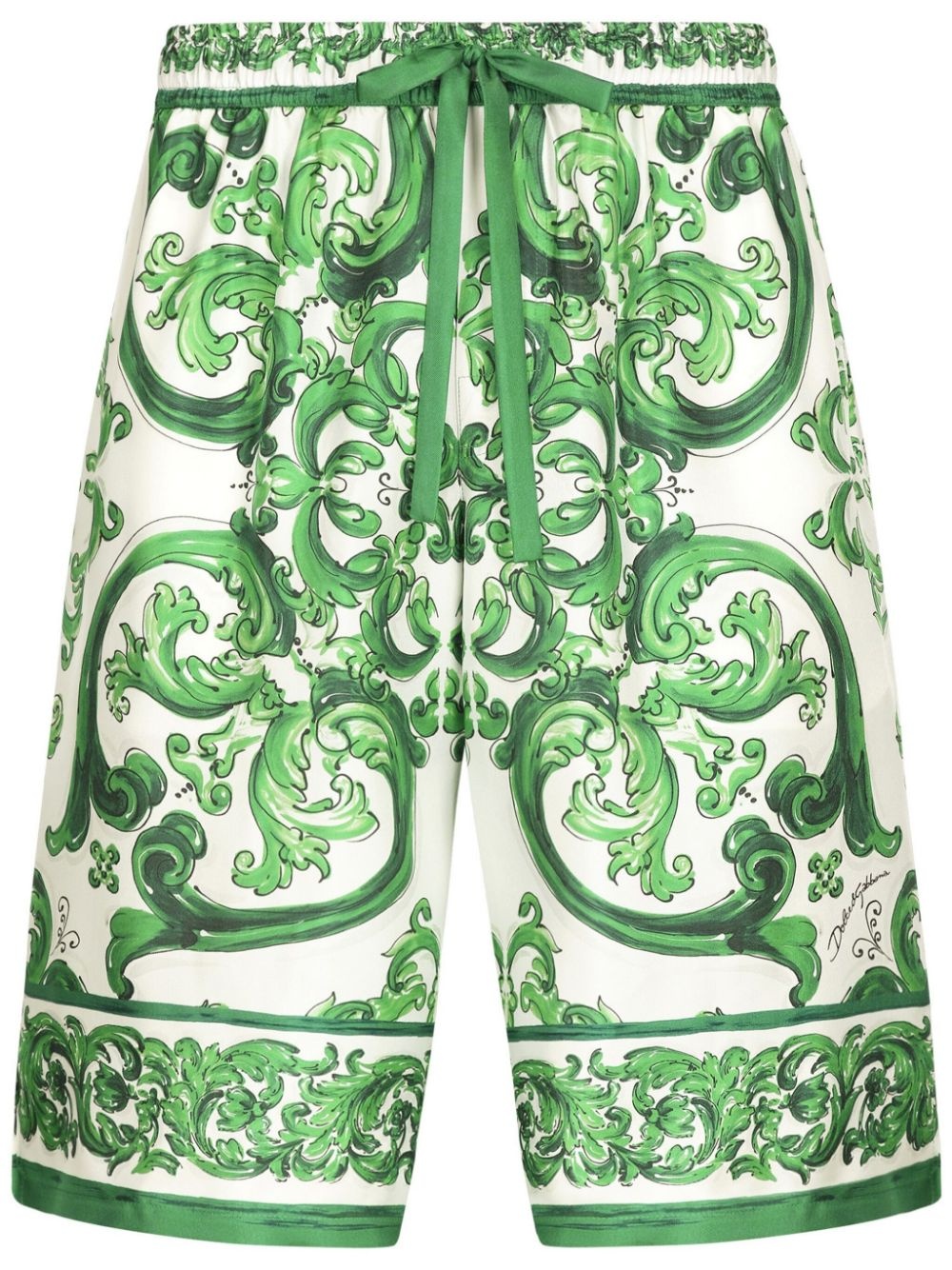 Majolica-print silk shorts Highlights - Green/white - Silk - Majolica print - Elasticated drawstring waistband - Wide leg - Side slits - Knee-length Made in Italy Composition Silk 100%