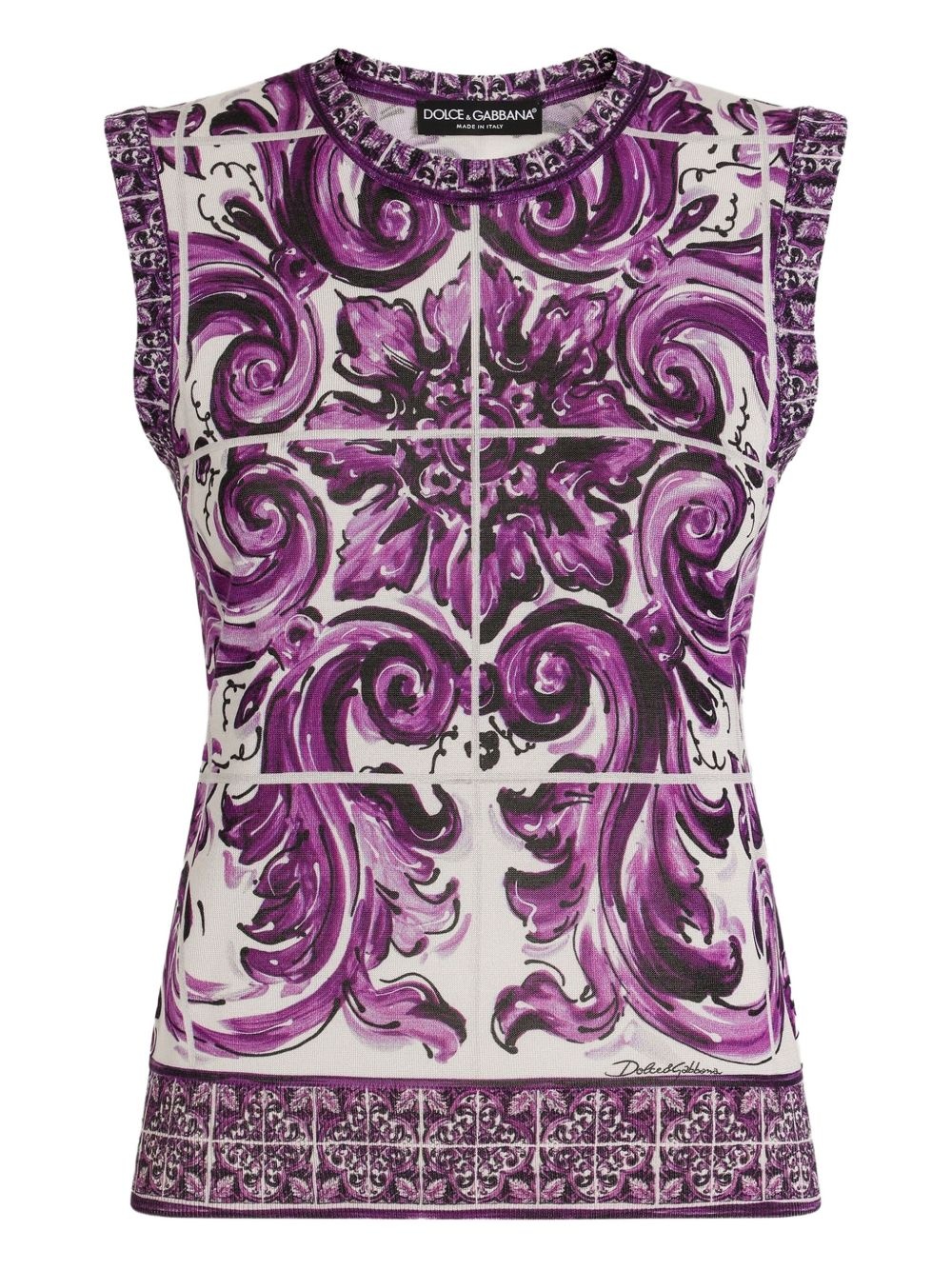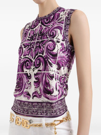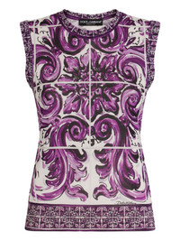 Majolica-print silk top Highlights - White - Crew neck - Sleeveless - Straight hem - Ribbed hem Made in Italy Composition Silk 100%