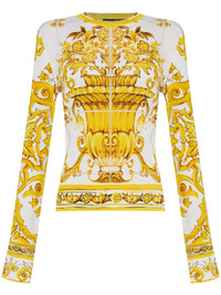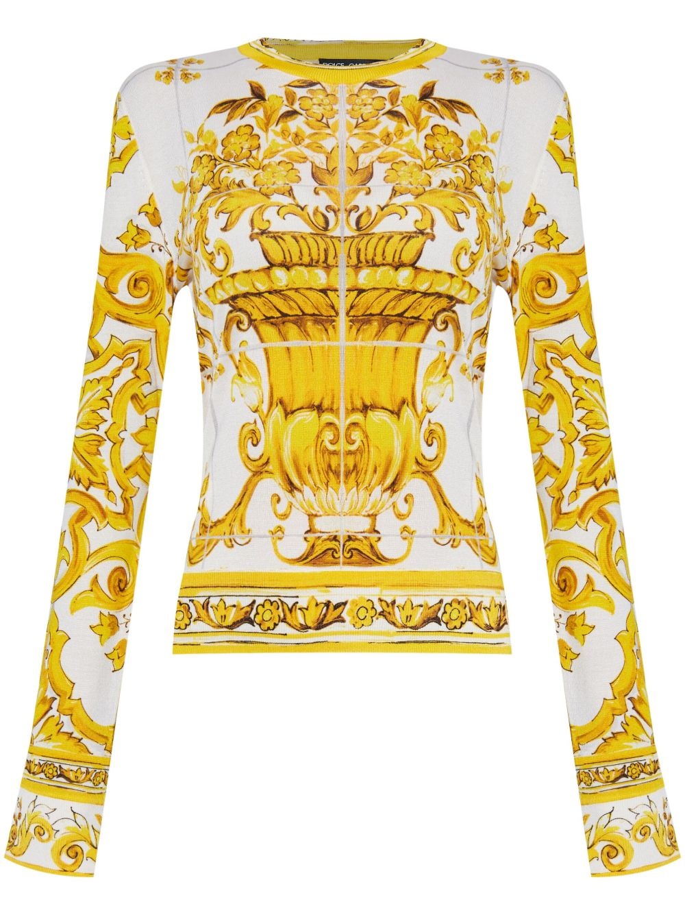 majolica print sweater Highlights - Yellow/white - Silk - Majolica print - Round neck - Long sleeves - Straight hem Made in Italy Composition Silk 100%