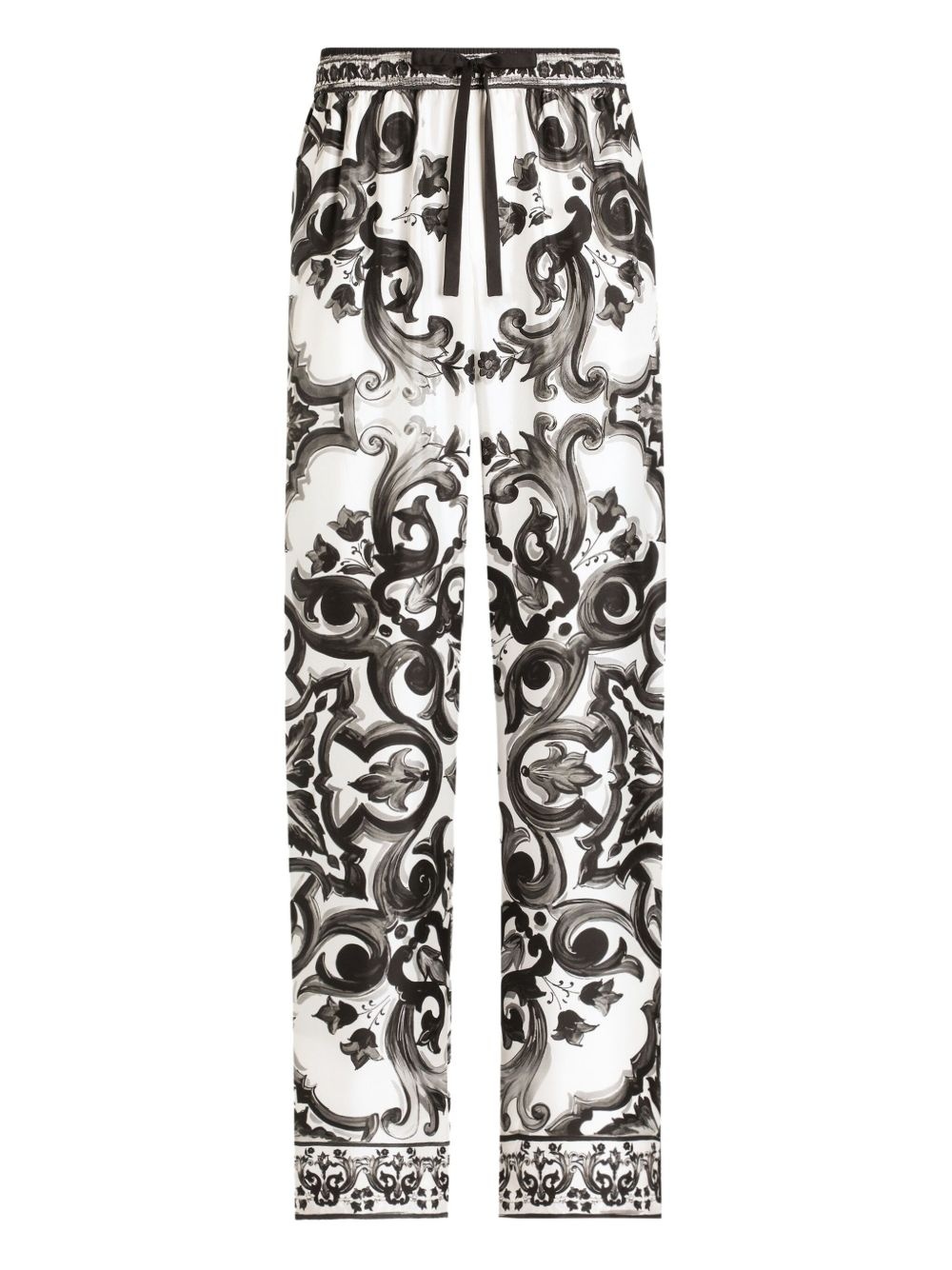 Majolica-print trousers Highlights - White - Ribbed drawstring waistband - All-over graphic print - Two side slit pockets - Rear jetted pocket Made in Italy Composition Silk 100%