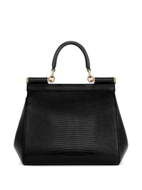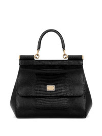 medium Sicily embossed-leather top-handle tote bag Highlights - Black - Snakeskin embossing - Top handle - Detachable shoulder strap - Gold-tone hardware - Flap closure Made in Italy Composition Outer: Calf Leather 100% SIZE & FIT Measurement DEPTH 3.93 in(10 cm) HEIGHT 7.28 in(18.5 cm) WIDTH 7.87 in(20 cm)