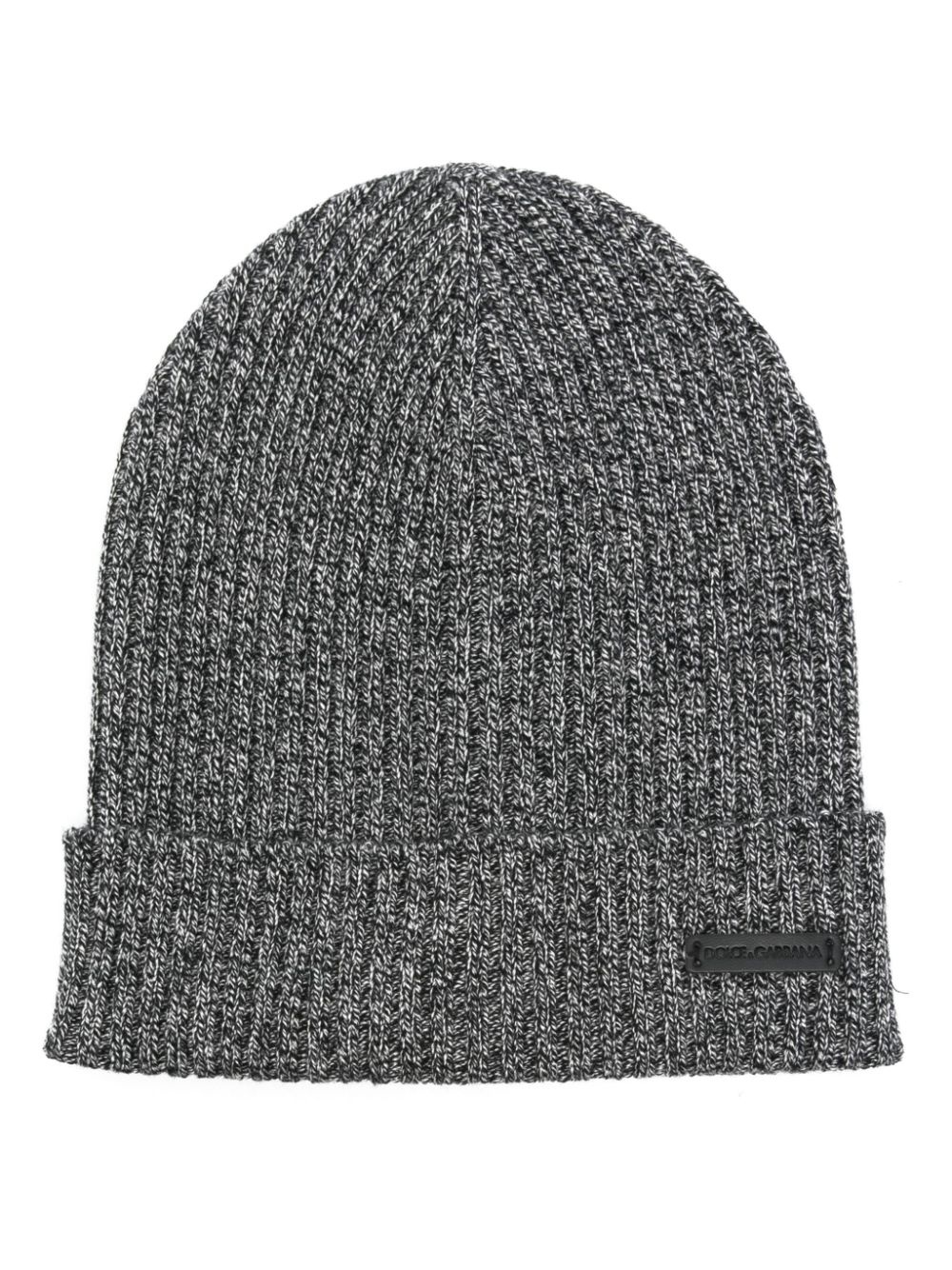 melange beanie Highlights - Black - Logo patch to the side - Ribbed knit - Turn-up hem Made in Italy Composition Virgin Wool 100%